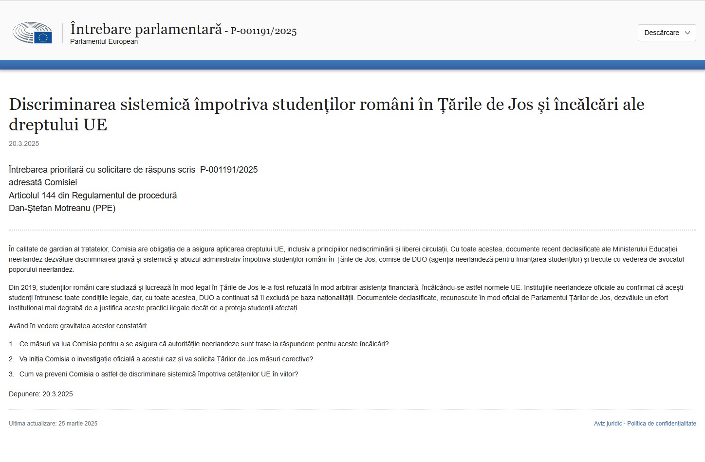 Acum, hai să îți spun un secret. Olandezii au încercat să ne oprească, pe noi, românii, să mai accesăm acești bani. Am ajuns să ne luptăm cu ei în instanță, iar uite unde s-a ajuns...